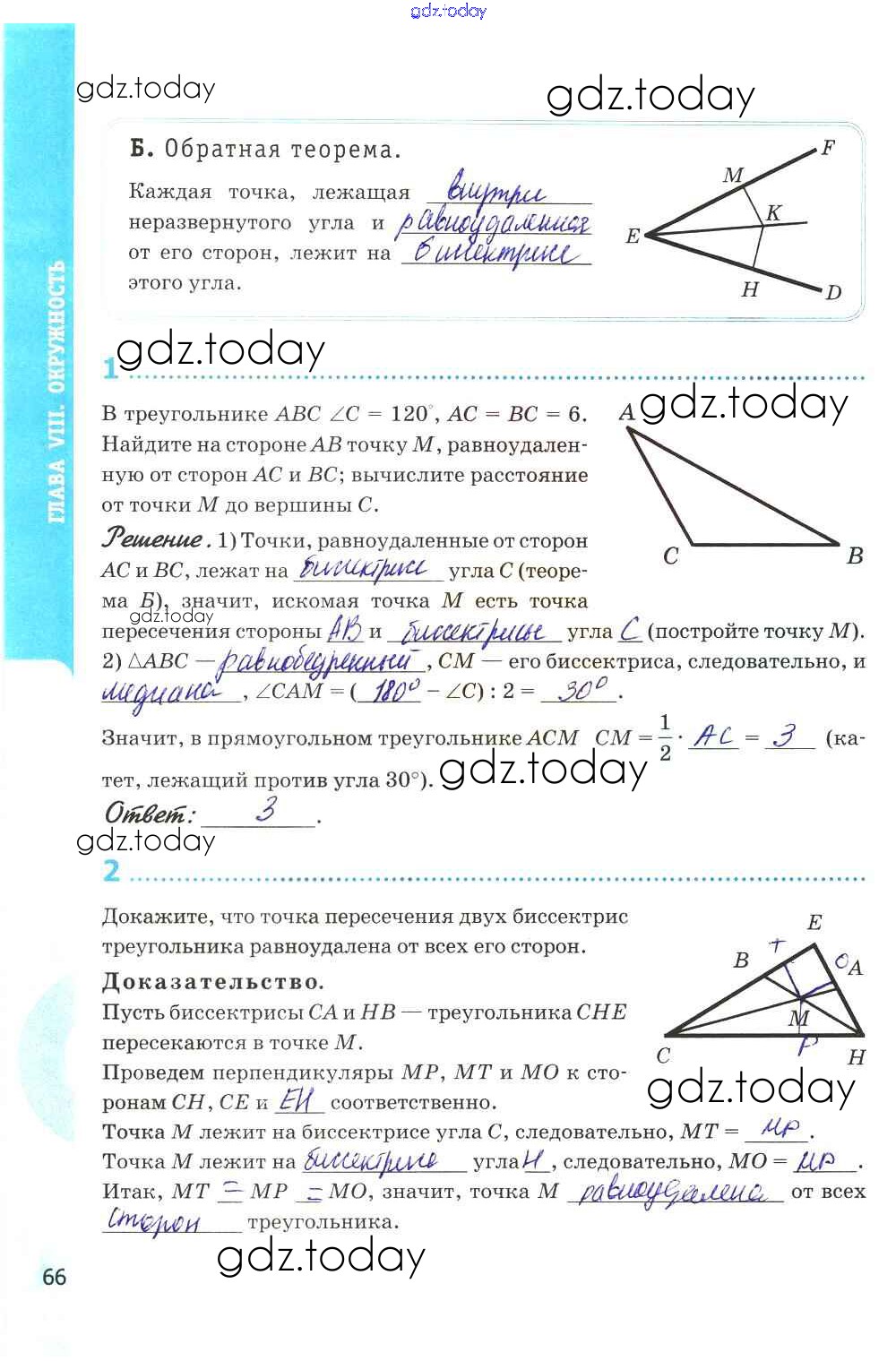 На страницах сайта gdz.today вы найдете учебный и вспомогательный материал, направленный на улучшения знаний школьной программы. ГДЗ - онлайн мир знаний Решение к главе VIII. Окружность стр. 66 Рабочей тетради по Геометрии для 8 класса Глазков, Камаев Экзамен УМК 2017