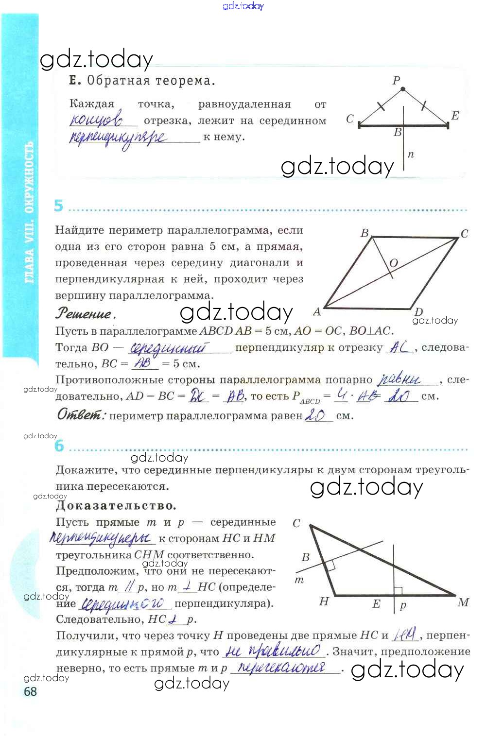 Ответы к Решение к главе VIII. Окружность стр. 68 Рабочей тетради по Геометрии для 8 класса Глазков, Камаев Экзамен УМК 2017