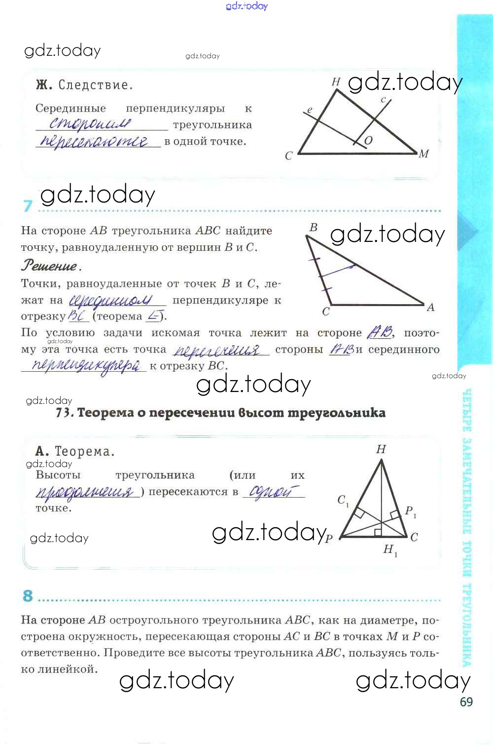 Ответы к Решение к главе VIII. Окружность стр. 69 Рабочей тетради по Геометрии для 8 класса Глазков, Камаев Экзамен УМК 2017