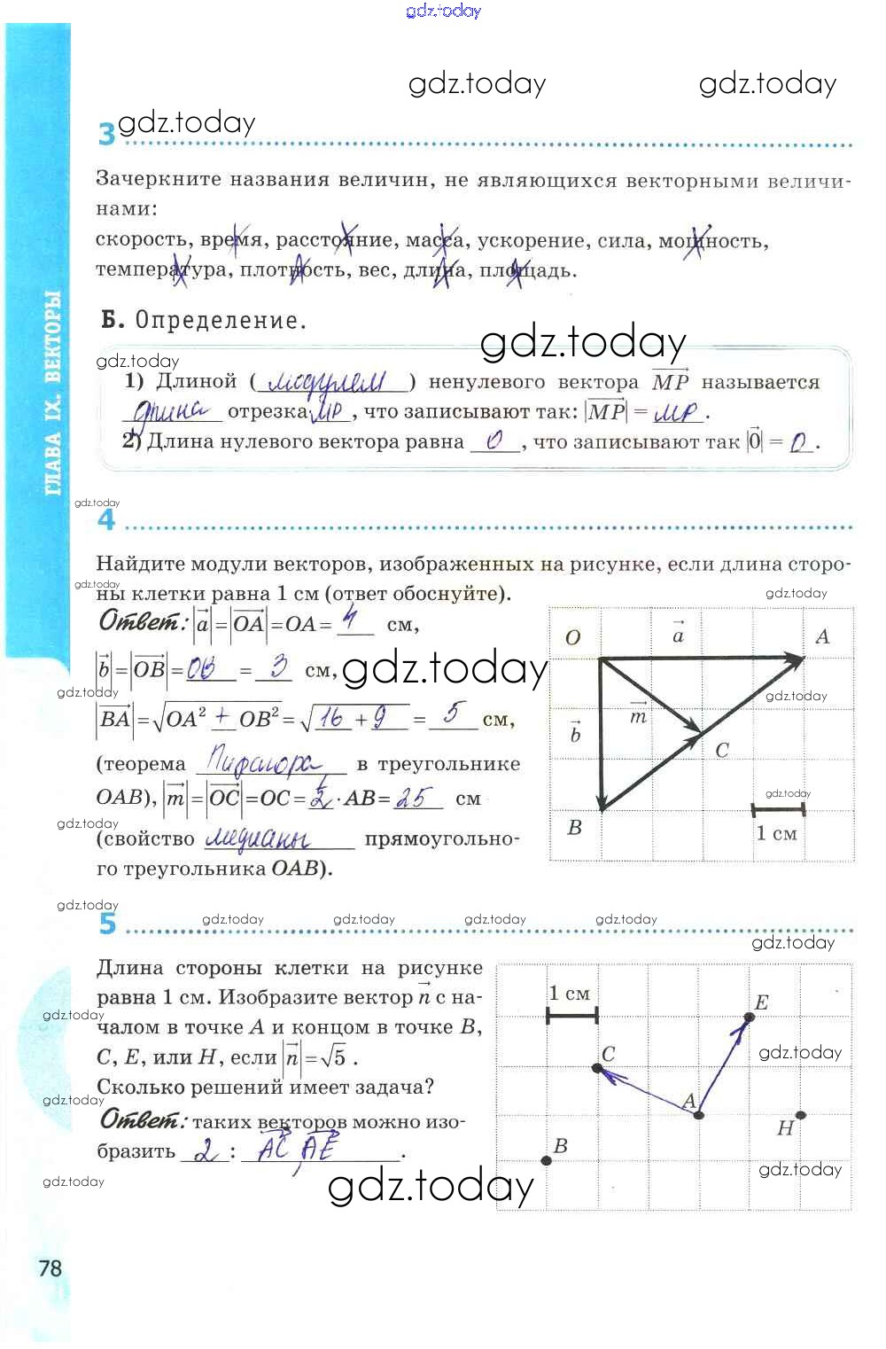 Ответы к Решение к главе IX. Векторы стр. 78 Рабочей тетради по Геометрии для 8 класса Глазков, Камаев Экзамен УМК 2017