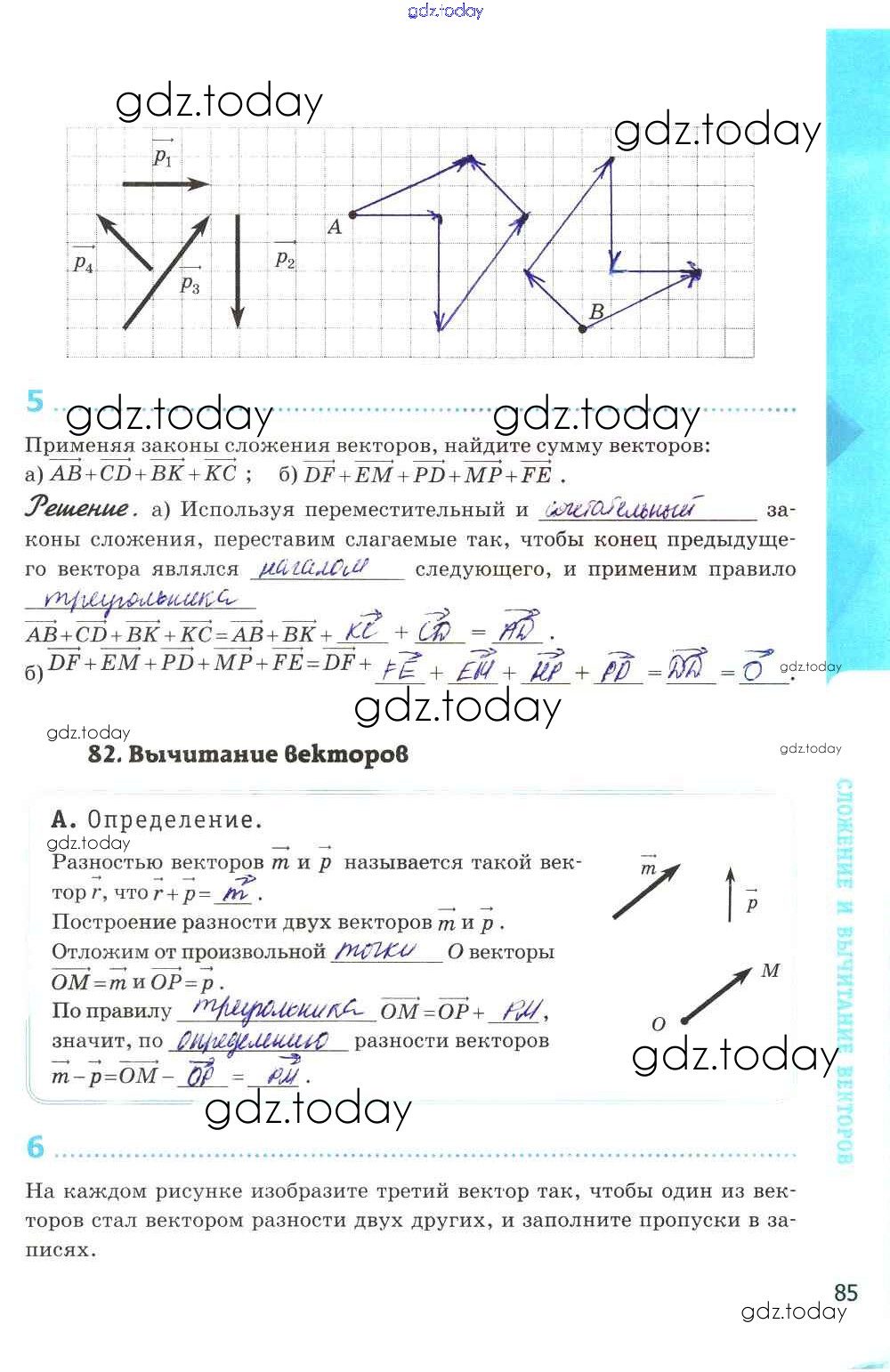 На страницах сайта gdz.today вы найдете учебный и вспомогательный материал, направленный на улучшения знаний школьной программы. ГДЗ - онлайн мир знаний Решение к главе IX. Векторы стр. 85 Рабочей тетради по Геометрии для 8 класса Глазков, Камаев Экзамен УМК 2017