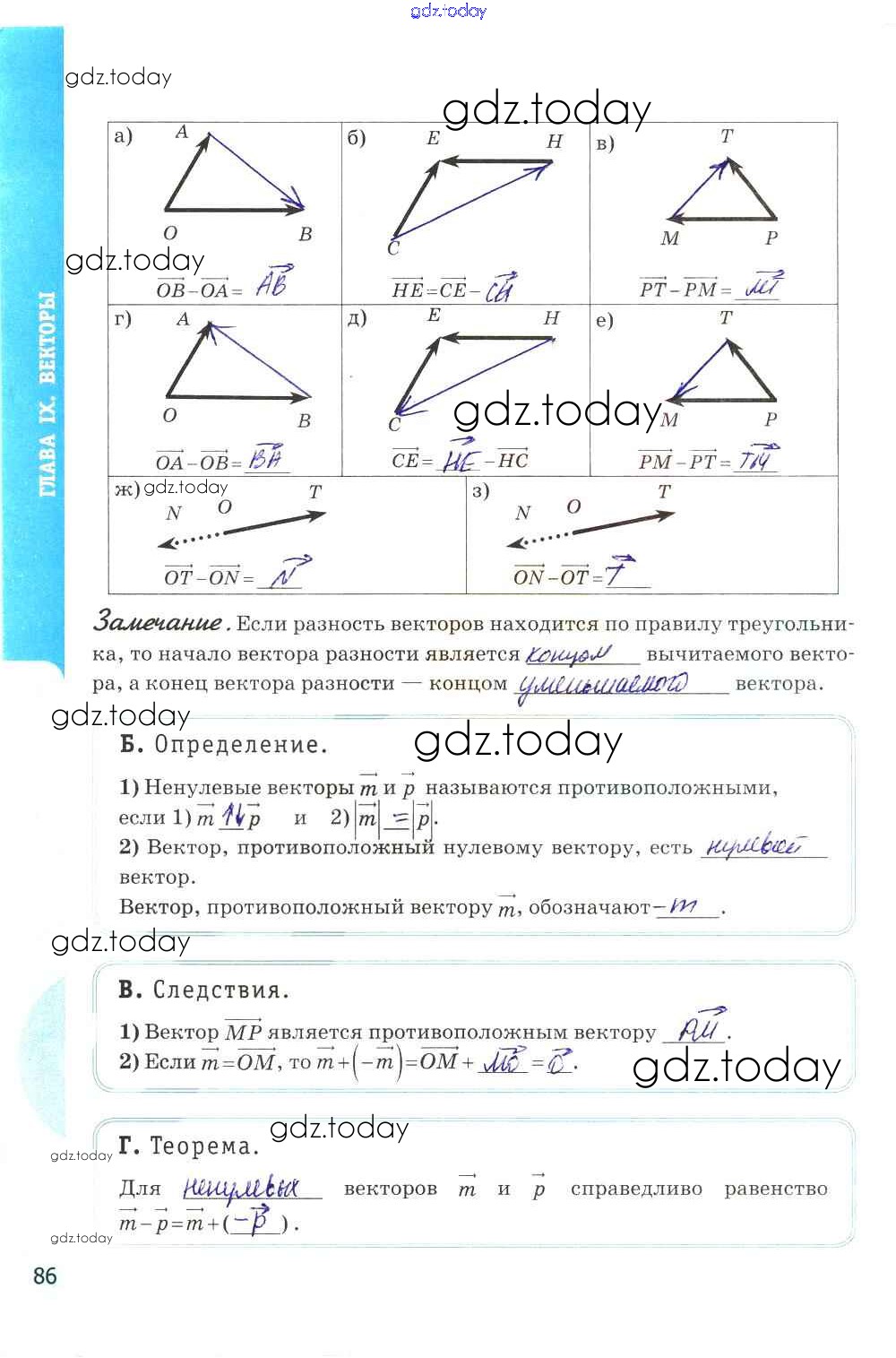 Ответы к Решение к главе IX. Векторы стр. 86 Рабочей тетради по Геометрии для 8 класса Глазков, Камаев Экзамен УМК 2017