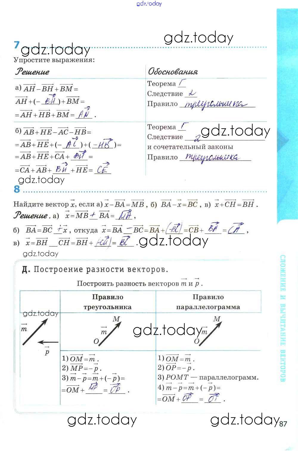 На страницах сайта gdz.today вы найдете учебный и вспомогательный материал, направленный на улучшения знаний школьной программы. ГДЗ - онлайн мир знаний Решение к главе IX. Векторы стр. 87 Рабочей тетради по Геометрии для 8 класса Глазков, Камаев Экзамен УМК 2017