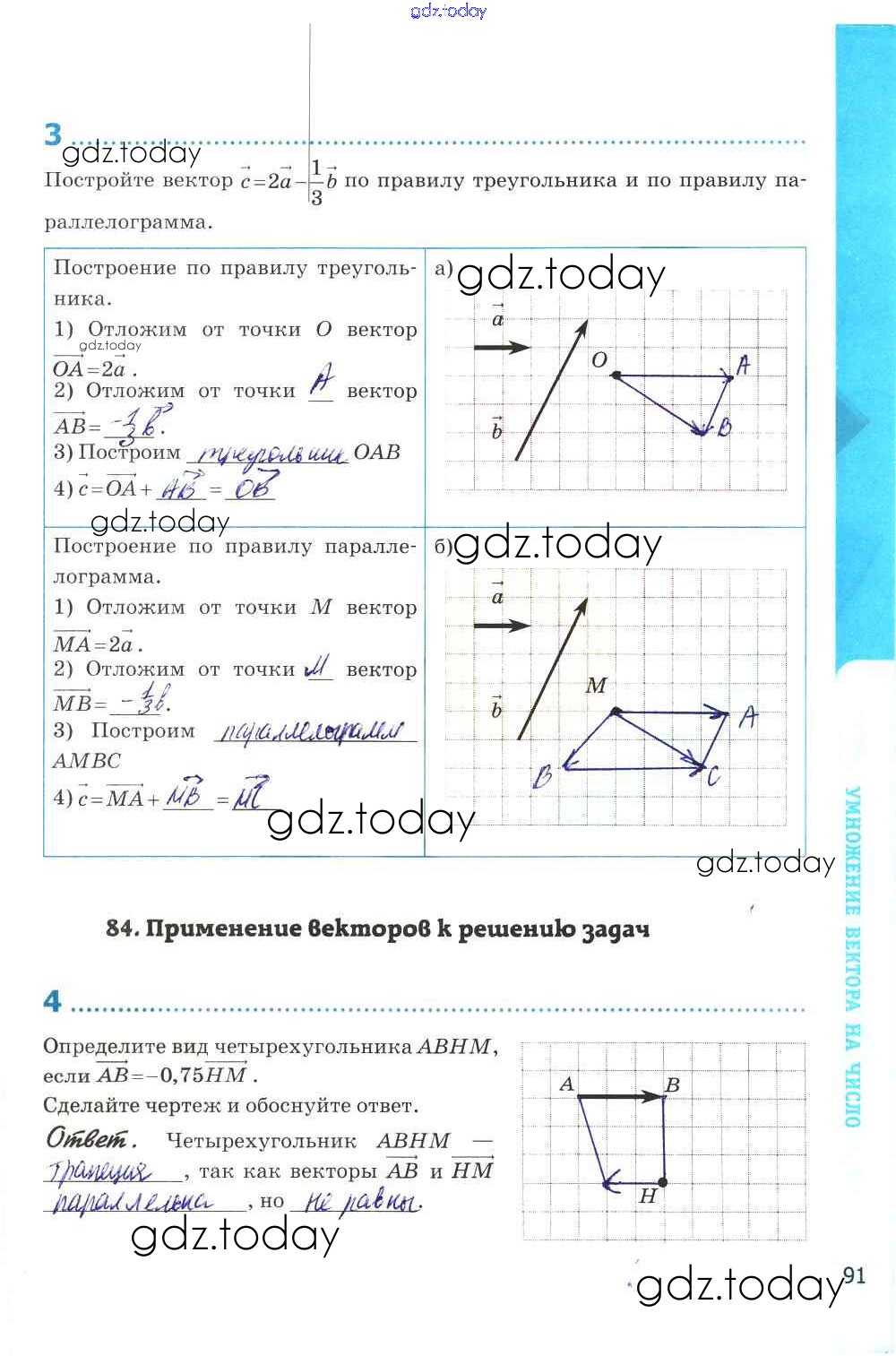Ответы к Решение к главе IX. Векторы стр. 91 Рабочей тетради по Геометрии для 8 класса Глазков, Камаев Экзамен УМК 2017