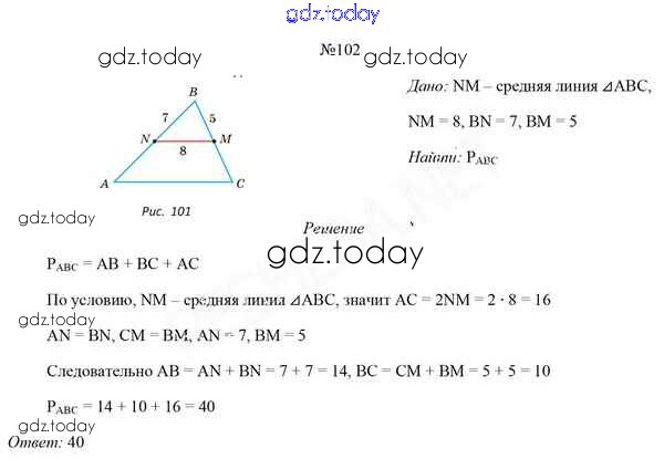 На страницах сайта gdz.today вы найдете учебный и вспомогательный материал, направленный на улучшения знаний школьной программы. ГДЗ - онлайн мир знаний Задачи (решение) 102 Учебнику по Геометрии для 8 класса Казаков Народная асвета 2018