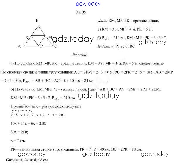 На страницах сайта gdz.today вы найдете учебный и вспомогательный материал, направленный на улучшения знаний школьной программы. ГДЗ - онлайн мир знаний Задачи (решение) 105 Учебнику по Геометрии для 8 класса Казаков Народная асвета 2018