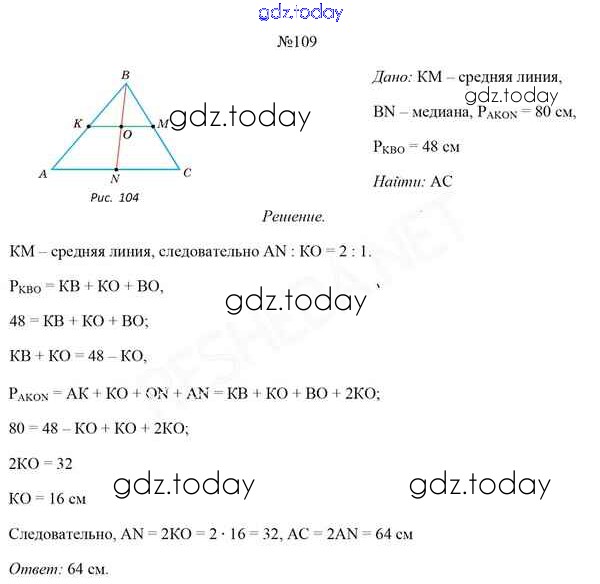 Ответы к Задачи (решение) 109 Учебнику по Геометрии для 8 класса Казаков Народная асвета 2018
