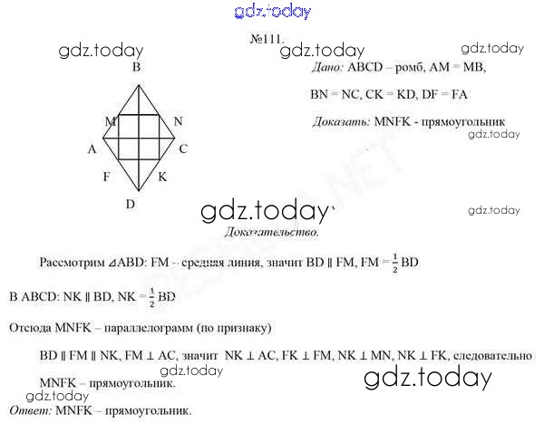 На страницах сайта gdz.today вы найдете учебный и вспомогательный материал, направленный на улучшения знаний школьной программы. ГДЗ - онлайн мир знаний Задачи (решение) 111 Учебнику по Геометрии для 8 класса Казаков Народная асвета 2018