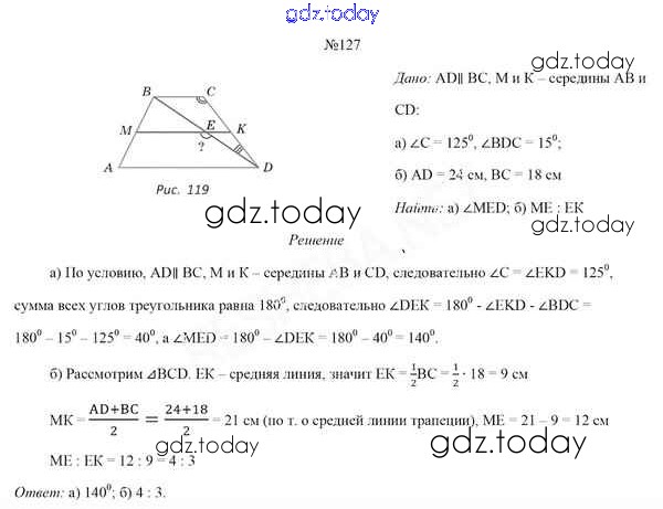 На страницах сайта gdz.today вы найдете учебный и вспомогательный материал, направленный на улучшения знаний школьной программы. ГДЗ - онлайн мир знаний Задачи (решение) 127 Учебнику по Геометрии для 8 класса Казаков Народная асвета 2018