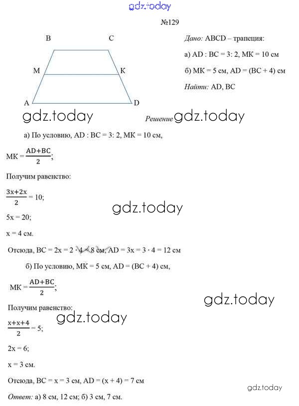 Ответы к Задачи (решение) 129 Учебнику по Геометрии для 8 класса Казаков Народная асвета 2018