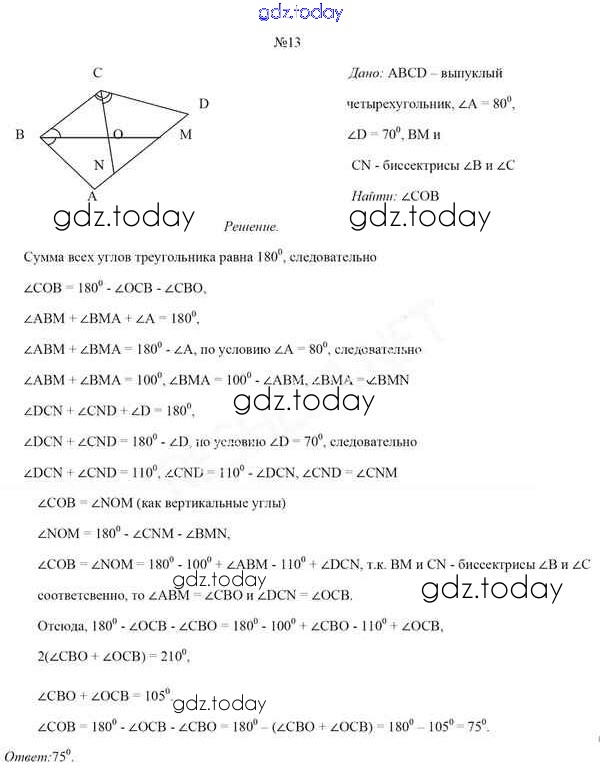 На страницах сайта gdz.today вы найдете учебный и вспомогательный материал, направленный на улучшения знаний школьной программы. ГДЗ - онлайн мир знаний Задачи (решение) 13 Учебнику по Геометрии для 8 класса Казаков Народная асвета 2018
