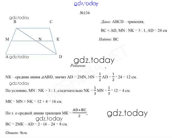 На страницах сайта gdz.today вы найдете учебный и вспомогательный материал, направленный на улучшения знаний школьной программы. ГДЗ - онлайн мир знаний Задачи (решение) 134 Учебнику по Геометрии для 8 класса Казаков Народная асвета 2018