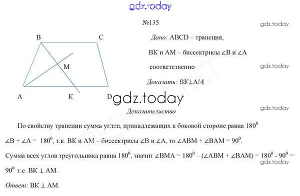 На страницах сайта gdz.today вы найдете учебный и вспомогательный материал, направленный на улучшения знаний школьной программы. ГДЗ - онлайн мир знаний Задачи (решение) 135 Учебнику по Геометрии для 8 класса Казаков Народная асвета 2018