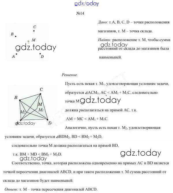 На страницах сайта gdz.today вы найдете учебный и вспомогательный материал, направленный на улучшения знаний школьной программы. ГДЗ - онлайн мир знаний Задачи (решение) 14 Учебнику по Геометрии для 8 класса Казаков Народная асвета 2018
