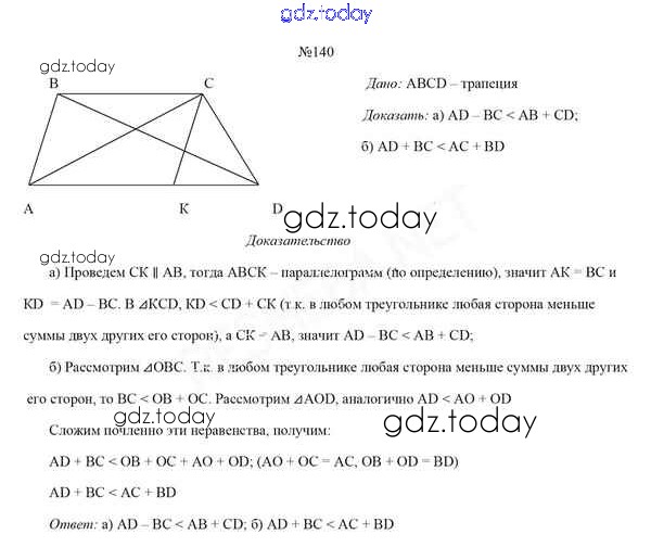 На страницах сайта gdz.today вы найдете учебный и вспомогательный материал, направленный на улучшения знаний школьной программы. ГДЗ - онлайн мир знаний Задачи (решение) 140 Учебнику по Геометрии для 8 класса Казаков Народная асвета 2018