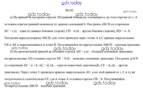 На страницах сайта gdz.today вы найдете учебный и вспомогательный материал, направленный на улучшения знаний школьной программы. ГДЗ - онлайн мир знаний Задачи (решение) 142 Учебнику по Геометрии для 8 класса Казаков Народная асвета 2018