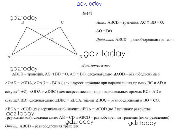 На страницах сайта gdz.today вы найдете учебный и вспомогательный материал, направленный на улучшения знаний школьной программы. ГДЗ - онлайн мир знаний Задачи (решение) 147 Учебнику по Геометрии для 8 класса Казаков Народная асвета 2018