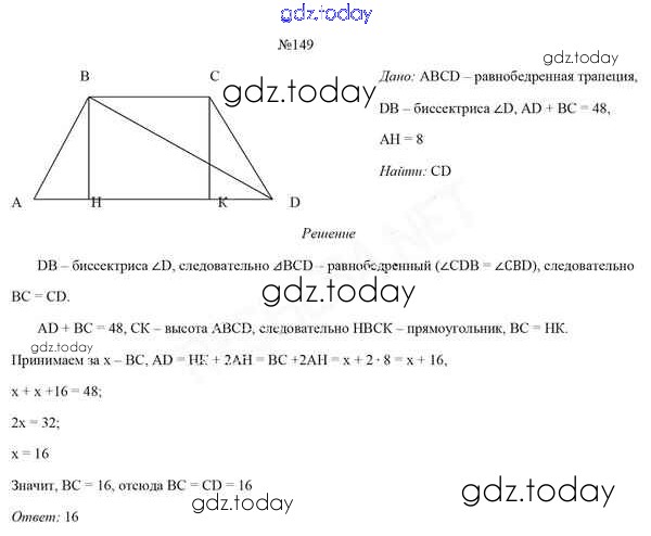 Ответы к Задачи (решение) 149 Учебнику по Геометрии для 8 класса Казаков Народная асвета 2018