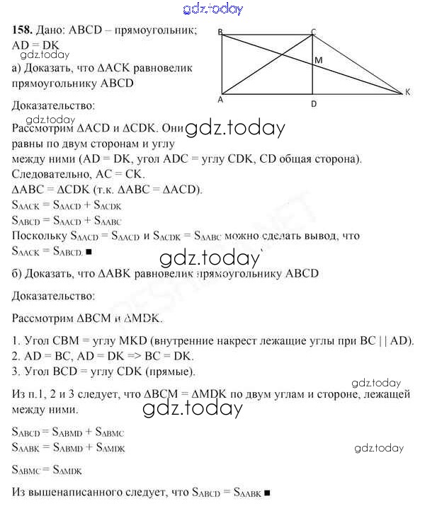 На страницах сайта gdz.today вы найдете учебный и вспомогательный материал, направленный на улучшения знаний школьной программы. ГДЗ - онлайн мир знаний Задачи (решение) 158 Учебнику по Геометрии для 8 класса Казаков Народная асвета 2018
