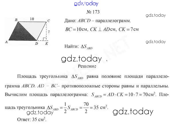 На страницах сайта gdz.today вы найдете учебный и вспомогательный материал, направленный на улучшения знаний школьной программы. ГДЗ - онлайн мир знаний Задачи (решение) 173 Учебнику по Геометрии для 8 класса Казаков Народная асвета 2018