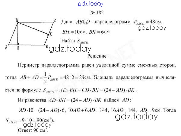 На страницах сайта gdz.today вы найдете учебный и вспомогательный материал, направленный на улучшения знаний школьной программы. ГДЗ - онлайн мир знаний Задачи (решение) 182 Учебнику по Геометрии для 8 класса Казаков Народная асвета 2018