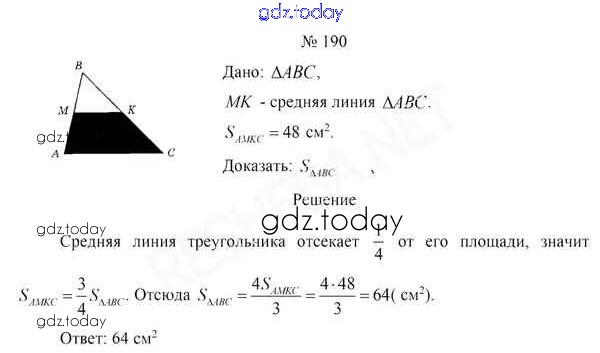 На страницах сайта gdz.today вы найдете учебный и вспомогательный материал, направленный на улучшения знаний школьной программы. ГДЗ - онлайн мир знаний Задачи (решение) 190 Учебнику по Геометрии для 8 класса Казаков Народная асвета 2018