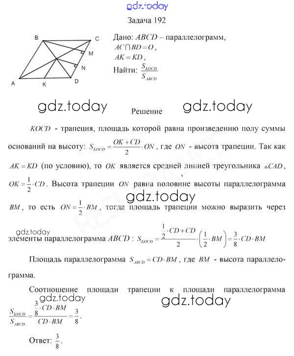 На страницах сайта gdz.today вы найдете учебный и вспомогательный материал, направленный на улучшения знаний школьной программы. ГДЗ - онлайн мир знаний Задачи (решение) 192 Учебнику по Геометрии для 8 класса Казаков Народная асвета 2018
