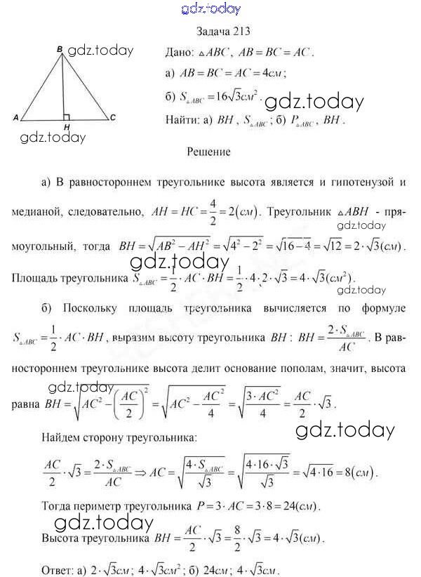 На страницах сайта gdz.today вы найдете учебный и вспомогательный материал, направленный на улучшения знаний школьной программы. ГДЗ - онлайн мир знаний Задачи (решение) 213 Учебнику по Геометрии для 8 класса Казаков Народная асвета 2018