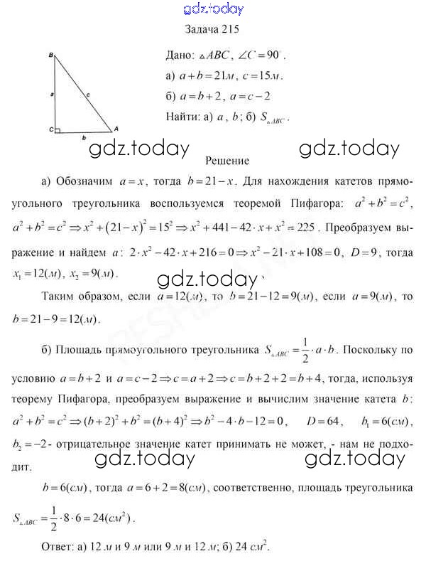 На страницах сайта gdz.today вы найдете учебный и вспомогательный материал, направленный на улучшения знаний школьной программы. ГДЗ - онлайн мир знаний Задачи (решение) 215 Учебнику по Геометрии для 8 класса Казаков Народная асвета 2018