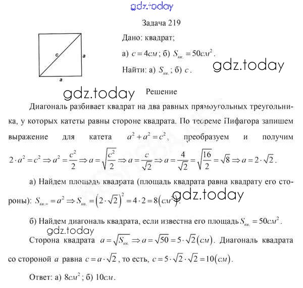 На страницах сайта gdz.today вы найдете учебный и вспомогательный материал, направленный на улучшения знаний школьной программы. ГДЗ - онлайн мир знаний Задачи (решение) 219 Учебнику по Геометрии для 8 класса Казаков Народная асвета 2018