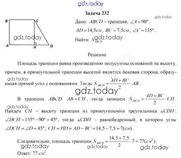 На страницах сайта gdz.today вы найдете учебный и вспомогательный материал, направленный на улучшения знаний школьной программы. ГДЗ - онлайн мир знаний Задачи (решение) 232 Учебнику по Геометрии для 8 класса Казаков Народная асвета 2018