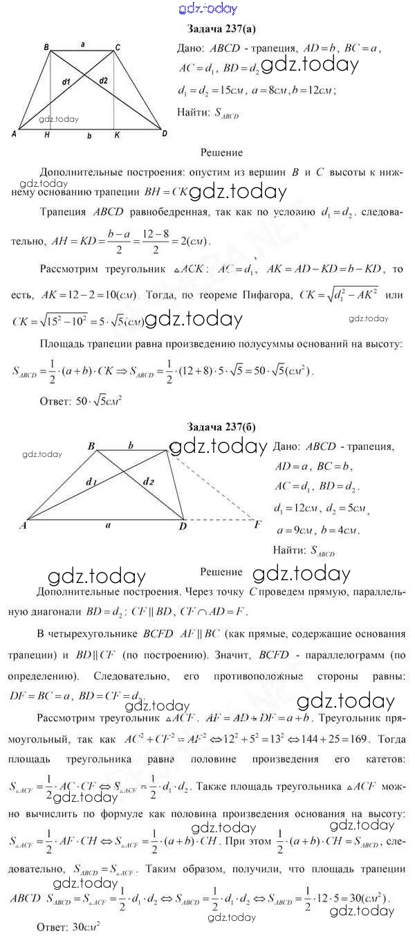 На страницах сайта gdz.today вы найдете учебный и вспомогательный материал, направленный на улучшения знаний школьной программы. ГДЗ - онлайн мир знаний Задачи (решение) 237 Учебнику по Геометрии для 8 класса Казаков Народная асвета 2018