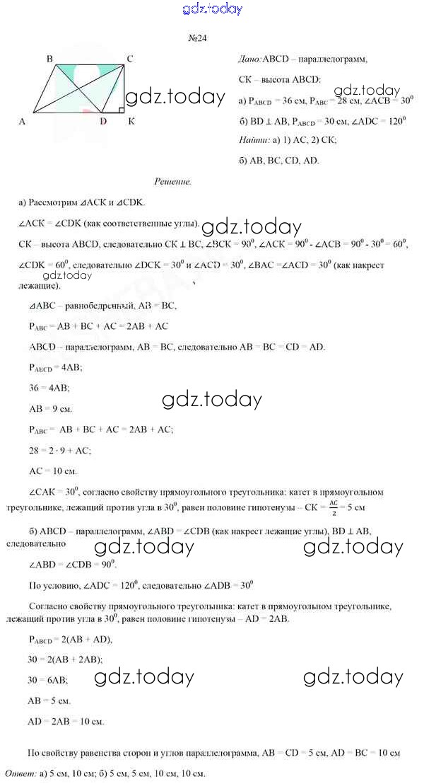 На страницах сайта gdz.today вы найдете учебный и вспомогательный материал, направленный на улучшения знаний школьной программы. ГДЗ - онлайн мир знаний Задачи (решение) 24 Учебнику по Геометрии для 8 класса Казаков Народная асвета 2018