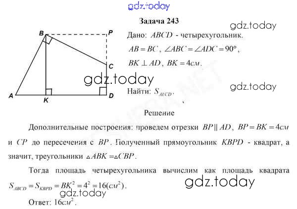 Ответы к Задачи (решение) 243 Учебнику по Геометрии для 8 класса Казаков Народная асвета 2018