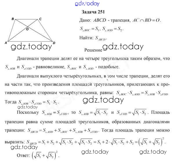 На страницах сайта gdz.today вы найдете учебный и вспомогательный материал, направленный на улучшения знаний школьной программы. ГДЗ - онлайн мир знаний Задачи (решение) 251 Учебнику по Геометрии для 8 класса Казаков Народная асвета 2018