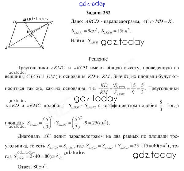 На страницах сайта gdz.today вы найдете учебный и вспомогательный материал, направленный на улучшения знаний школьной программы. ГДЗ - онлайн мир знаний Задачи (решение) 252 Учебнику по Геометрии для 8 класса Казаков Народная асвета 2018