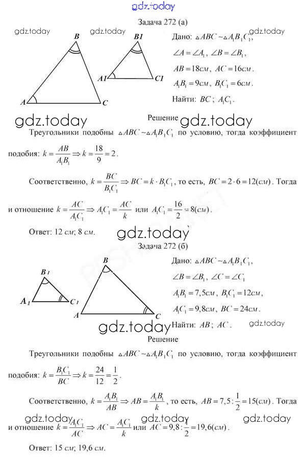 На страницах сайта gdz.today вы найдете учебный и вспомогательный материал, направленный на улучшения знаний школьной программы. ГДЗ - онлайн мир знаний Задачи (решение) 272 Учебнику по Геометрии для 8 класса Казаков Народная асвета 2018