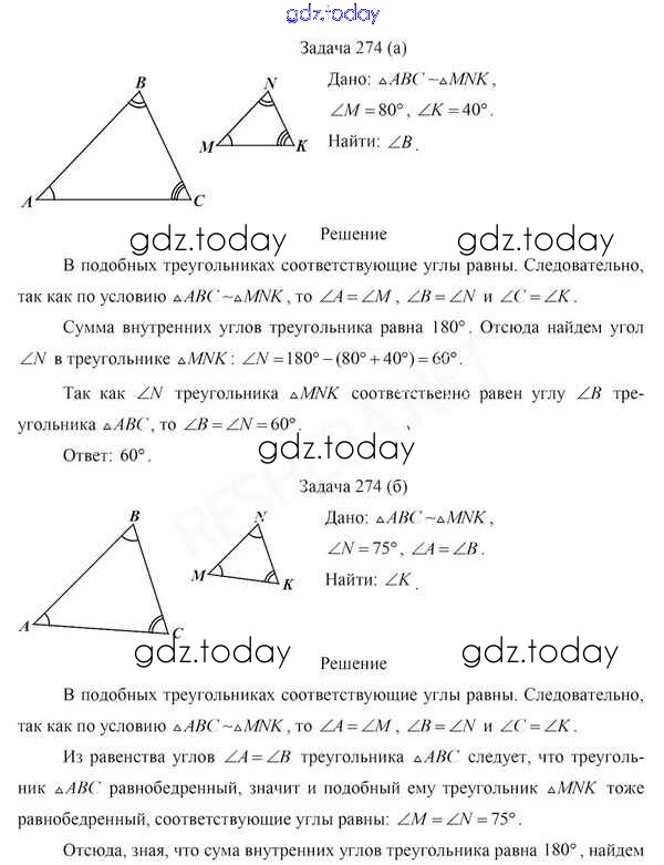 На страницах сайта gdz.today вы найдете учебный и вспомогательный материал, направленный на улучшения знаний школьной программы. ГДЗ - онлайн мир знаний Задачи (решение) 274 Учебнику по Геометрии для 8 класса Казаков Народная асвета 2018