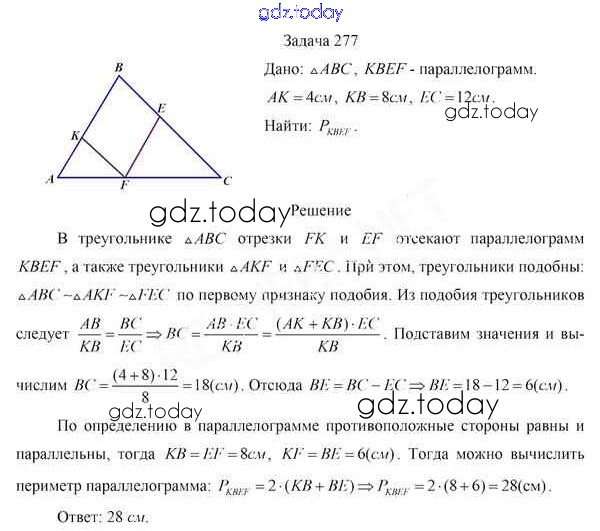 На страницах сайта gdz.today вы найдете учебный и вспомогательный материал, направленный на улучшения знаний школьной программы. ГДЗ - онлайн мир знаний Задачи (решение) 277 Учебнику по Геометрии для 8 класса Казаков Народная асвета 2018