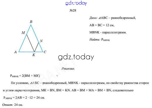 Ответы к Задачи (решение) 28 Учебнику по Геометрии для 8 класса Казаков Народная асвета 2018