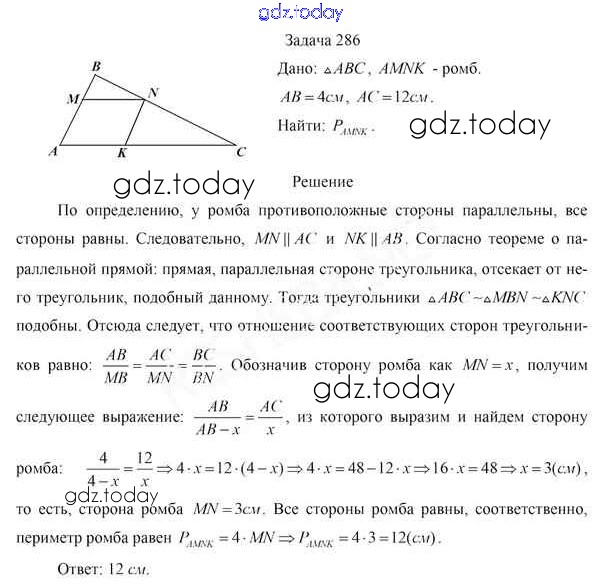 На страницах сайта gdz.today вы найдете учебный и вспомогательный материал, направленный на улучшения знаний школьной программы. ГДЗ - онлайн мир знаний Задачи (решение) 286 Учебнику по Геометрии для 8 класса Казаков Народная асвета 2018