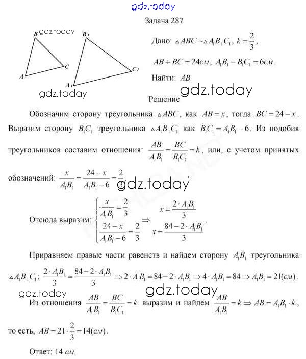 Ответы к Задачи (решение) 287 Учебнику по Геометрии для 8 класса Казаков Народная асвета 2018