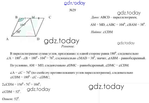 Ответы к Задачи (решение) 29 Учебнику по Геометрии для 8 класса Казаков Народная асвета 2018