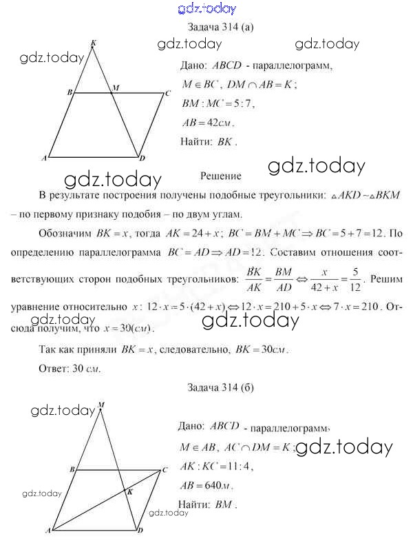 На страницах сайта gdz.today вы найдете учебный и вспомогательный материал, направленный на улучшения знаний школьной программы. ГДЗ - онлайн мир знаний Задачи (решение) 314 Учебнику по Геометрии для 8 класса Казаков Народная асвета 2018