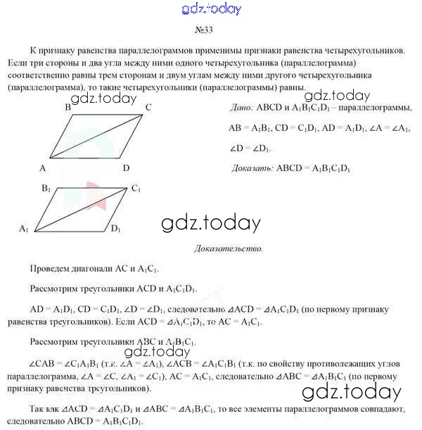 На страницах сайта gdz.today вы найдете учебный и вспомогательный материал, направленный на улучшения знаний школьной программы. ГДЗ - онлайн мир знаний Задачи (решение) 33 Учебнику по Геометрии для 8 класса Казаков Народная асвета 2018
