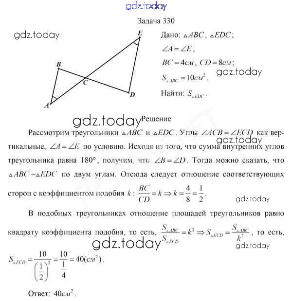 На страницах сайта gdz.today вы найдете учебный и вспомогательный материал, направленный на улучшения знаний школьной программы. ГДЗ - онлайн мир знаний Задачи (решение) 330 Учебнику по Геометрии для 8 класса Казаков Народная асвета 2018