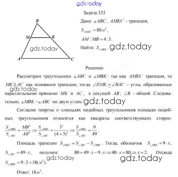 На страницах сайта gdz.today вы найдете учебный и вспомогательный материал, направленный на улучшения знаний школьной программы. ГДЗ - онлайн мир знаний Задачи (решение) 333 Учебнику по Геометрии для 8 класса Казаков Народная асвета 2018