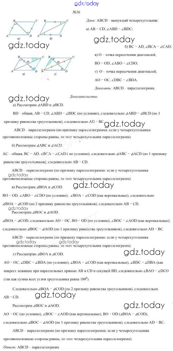 На страницах сайта gdz.today вы найдете учебный и вспомогательный материал, направленный на улучшения знаний школьной программы. ГДЗ - онлайн мир знаний Задачи (решение) 36 Учебнику по Геометрии для 8 класса Казаков Народная асвета 2018