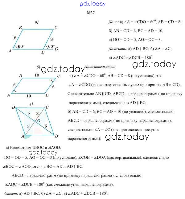 На страницах сайта gdz.today вы найдете учебный и вспомогательный материал, направленный на улучшения знаний школьной программы. ГДЗ - онлайн мир знаний Задачи (решение) 37 Учебнику по Геометрии для 8 класса Казаков Народная асвета 2018
