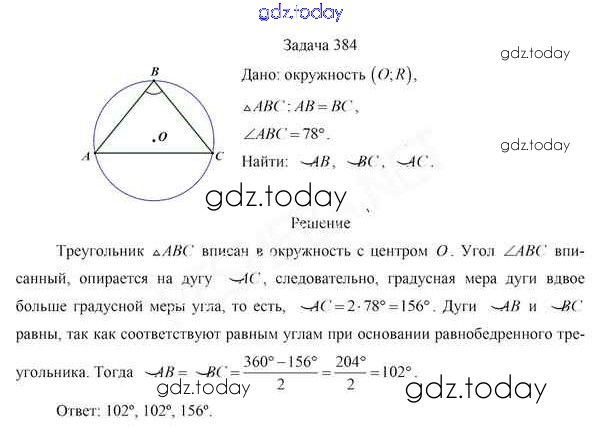 На страницах сайта gdz.today вы найдете учебный и вспомогательный материал, направленный на улучшения знаний школьной программы. ГДЗ - онлайн мир знаний Задачи (решение) 384 Учебнику по Геометрии для 8 класса Казаков Народная асвета 2018